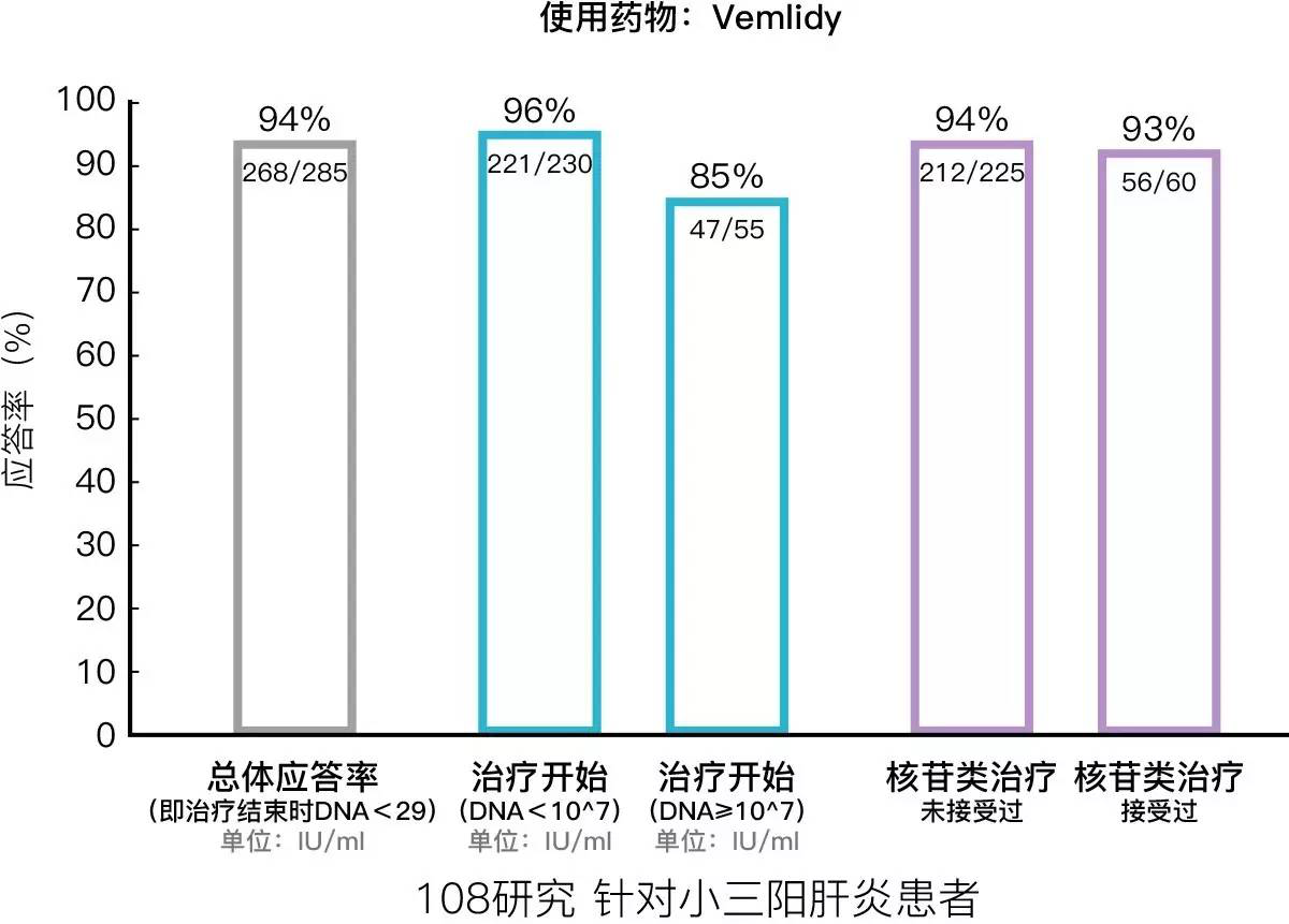 Vemlidy临床试验中≥65岁的实验对象的数量不足,尚不能知道老年人与年轻人相比是否有不同药物反应。